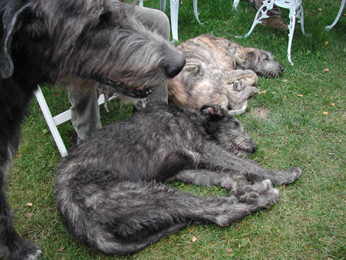 Jag har varit på valpträff. Jo, jag får gå på sånna för jag är också valp säger matten. Som mest var vi 20 varghundar i varierande ålder. Bland dom som var där kan ju nämnas Aiax och Vincent så klart. Primus fick stanna hemma hos Ebba, matten säger att han är alldeles för på, med flickorna alltså. Det var massor med smask där. Jag fick en yttapytte liten bit av chokladkakan matten hade gjort, hon säger att choklad inte är bra för hundar, hmmmm. Sedan så fick jag äppelpaj med vaniljglass och till sist en korv med mozzarella och basilika i bröd, *ssslrrrrp*.
